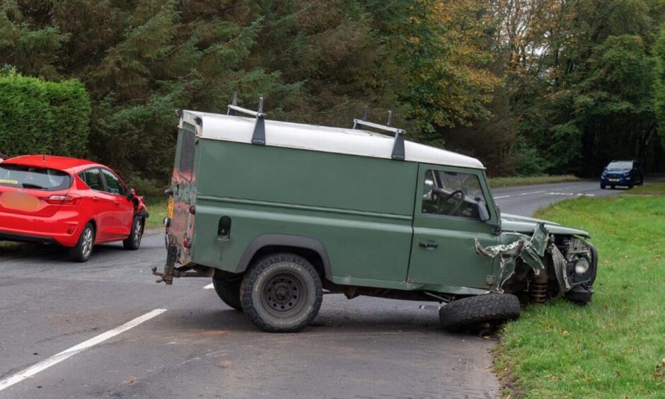 The accident involves a truck, van and car.