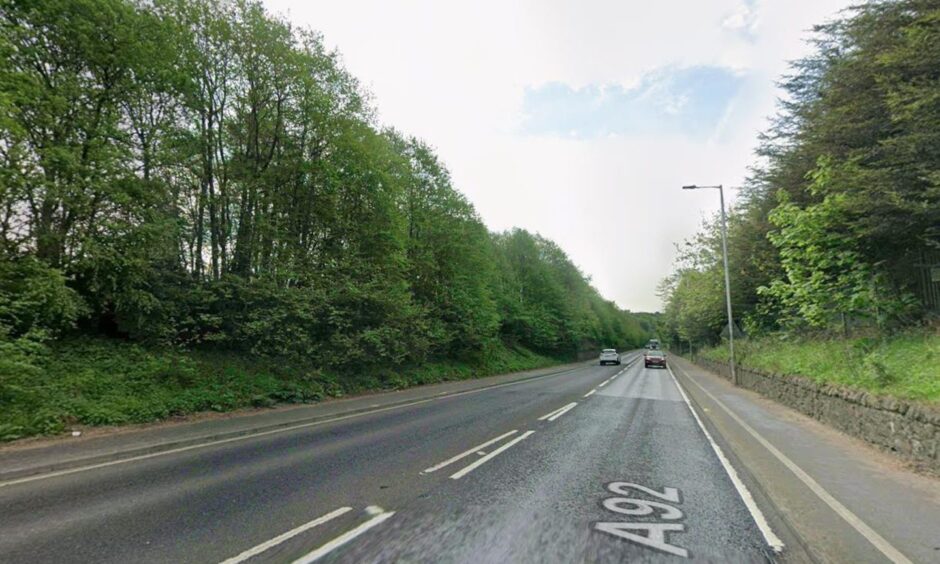 The road was closed in both directions between the Preston and Tullis Russell roundabouts.