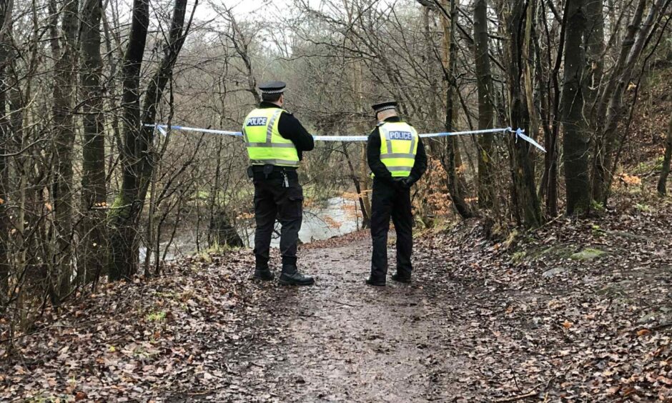 The man's body was found in a wooded area near the Dighty Burn three days before Christmas.